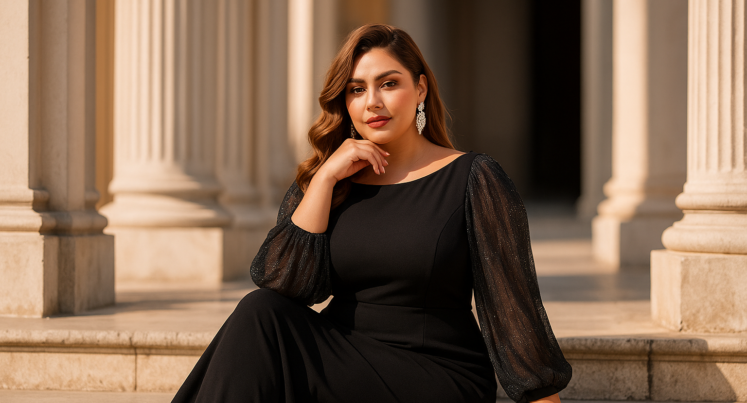 Sort ribkjole med kortærmer, krave og V-udskæring